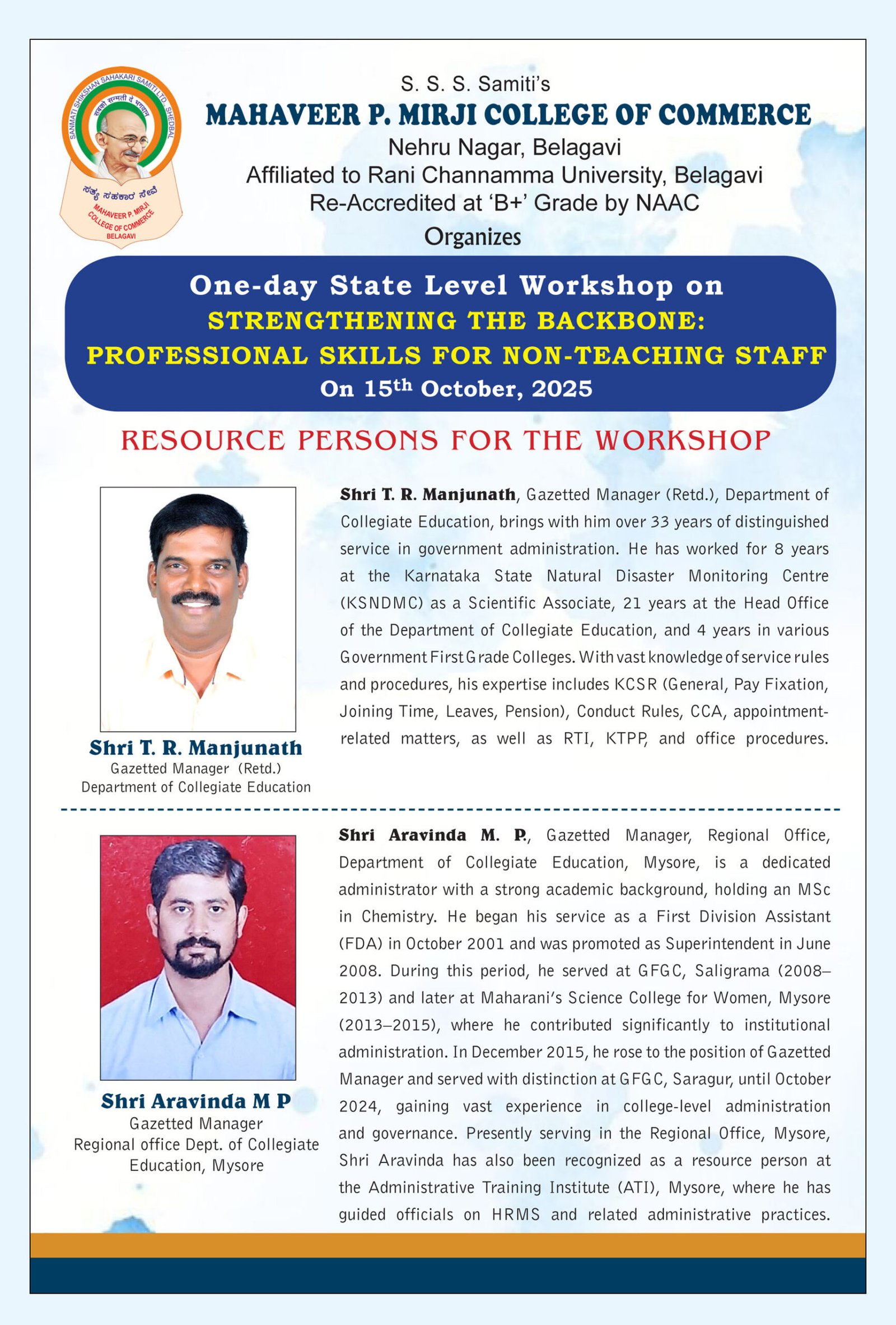 At present, the Samiti manages an impressive portfolio of institutions, which include Sou. Shobha Jagadish Savadatti English Medium School, Jagadish A. Savadatti PU College, Mahaveer P. Mirji College of Commerce, the PG Department of Commerce, and the BBA College. Each of these institutions reflects a steadfast commitment to fostering academic excellence, innovation, and holistic development.